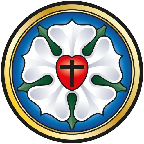 Die „Luther-Rose“ als persönliches Siegel Martin Luthers: Das Kreuz Jesu Christi als Symbol der Liebe Gottes steht im Zentrum der Theologie Luthers. Das Herz symbolisiert den lebendigen Glauben, der von Herzen kommt. Das Herz steht inmitten einer weißen Rose. Sie erinnert daran, dass der Glaube Freude, Trost und Frieden schenkt. Ein goldener Ring umschließt das Siegel und ist ein Zeichen für Gottes Ewigkeit.